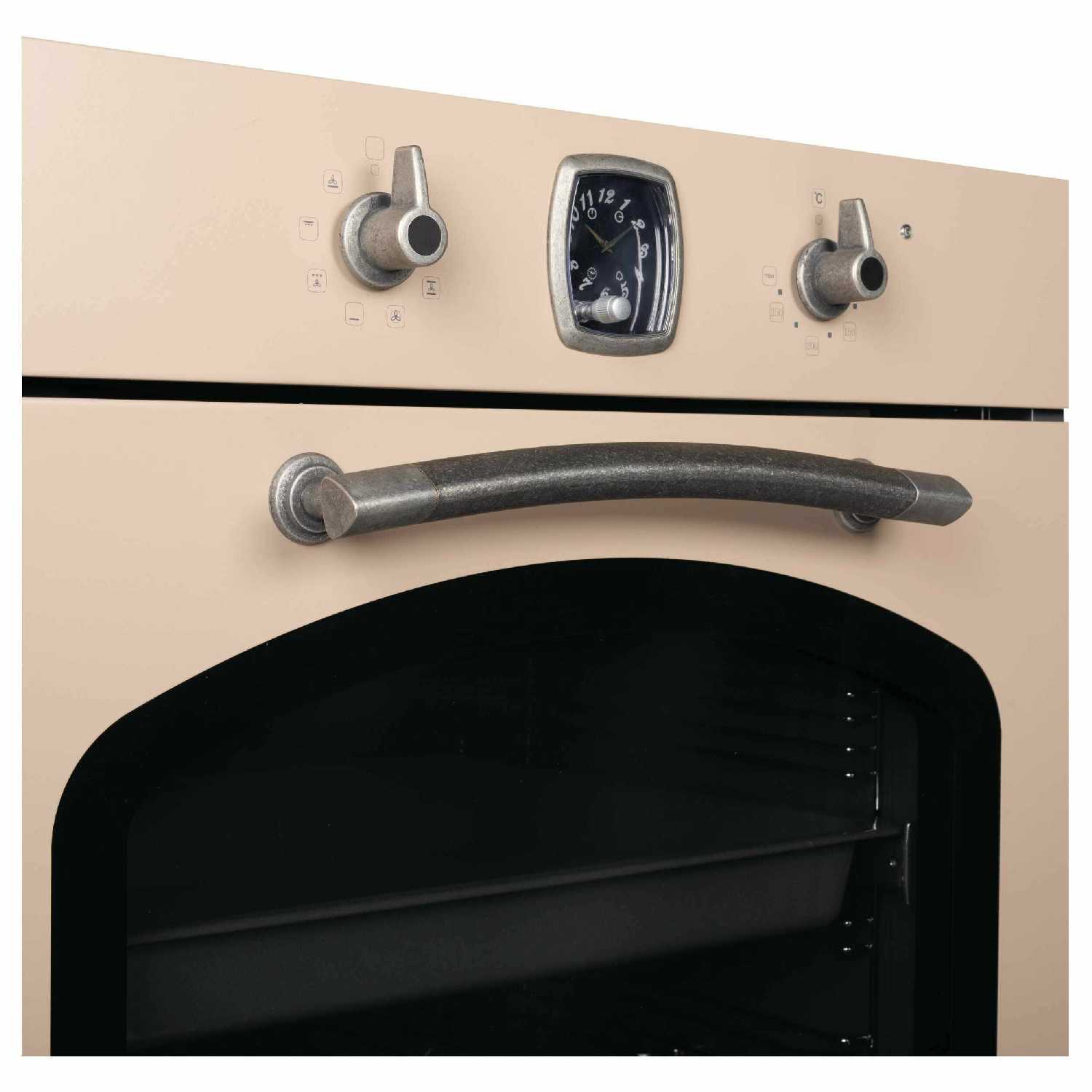 Модель сочетает винтажные элементы (медные ручки, плавные линии) с лаконичной панелью управления. Пользователи успешно комбинируют ее с техникой в стиле хай-тек, отмечая, что духовка становится акцентным элементом. Доступные цвета позволяют подобрать вариант под любую палитру. -