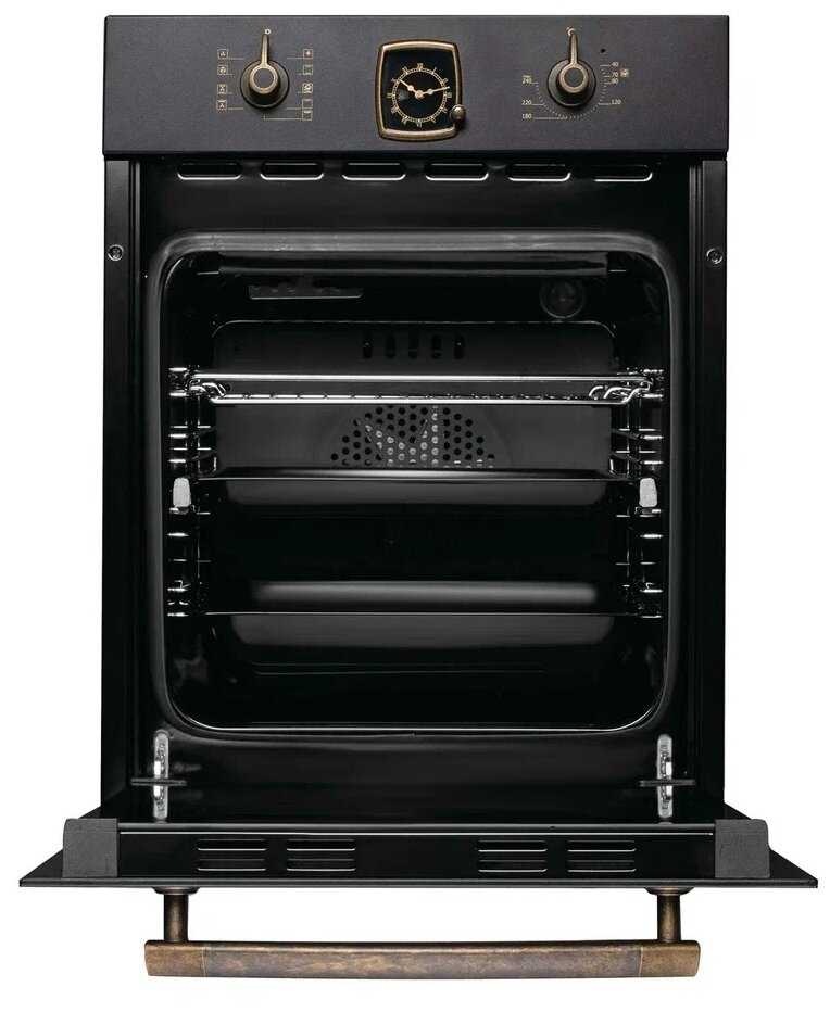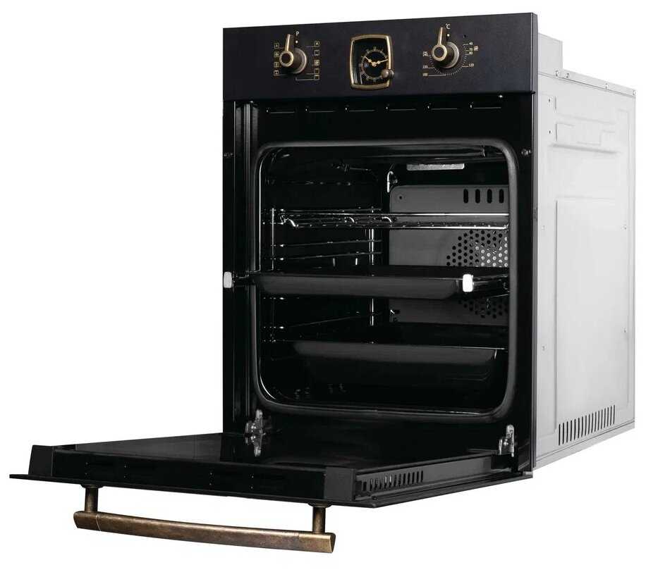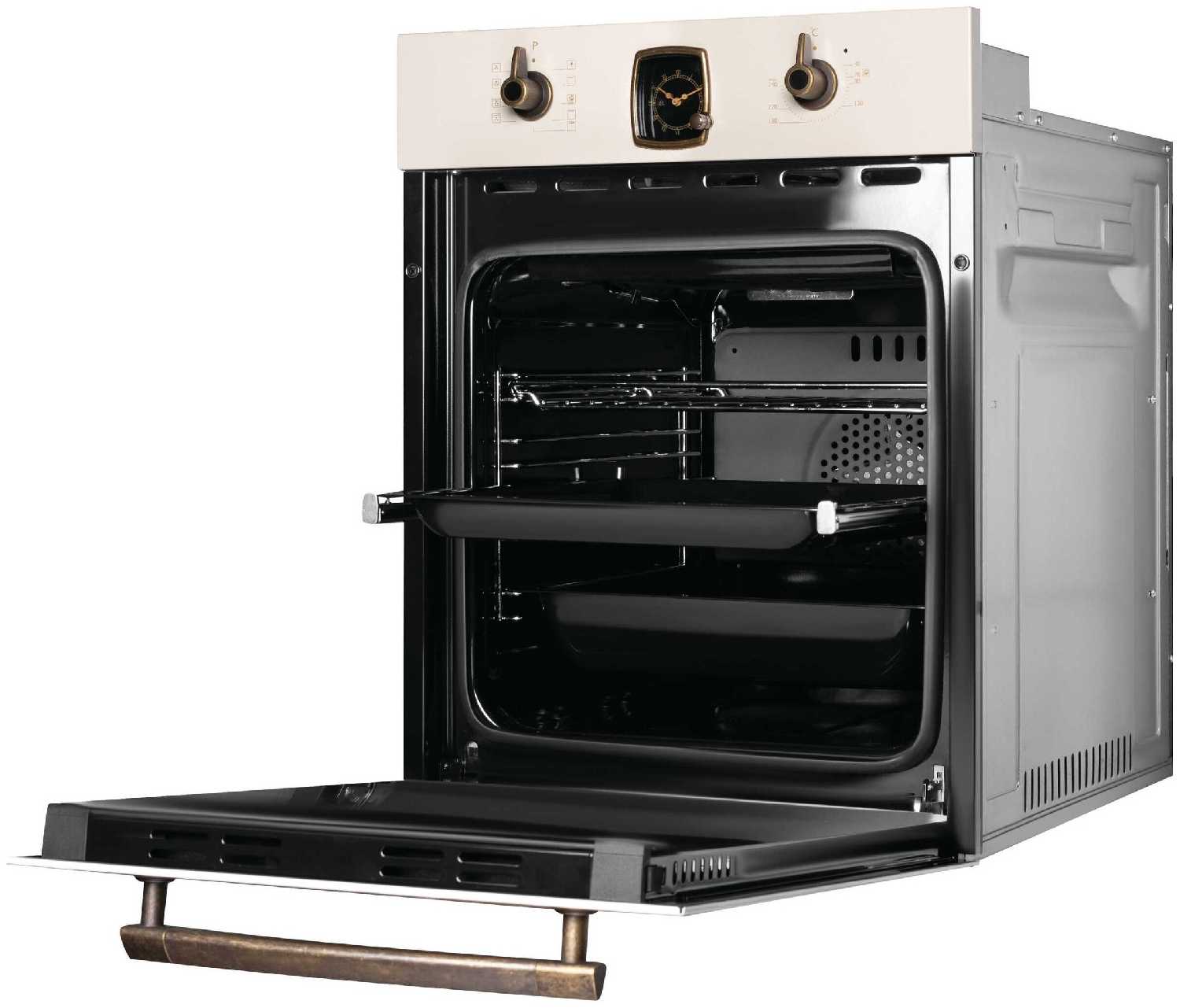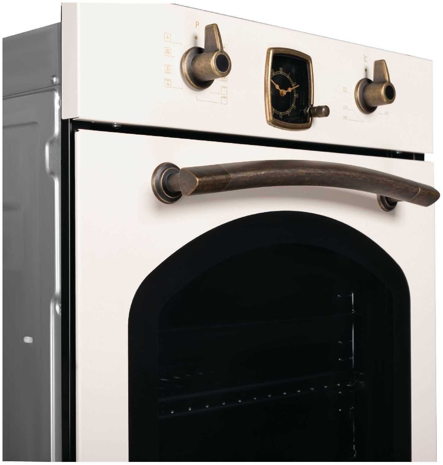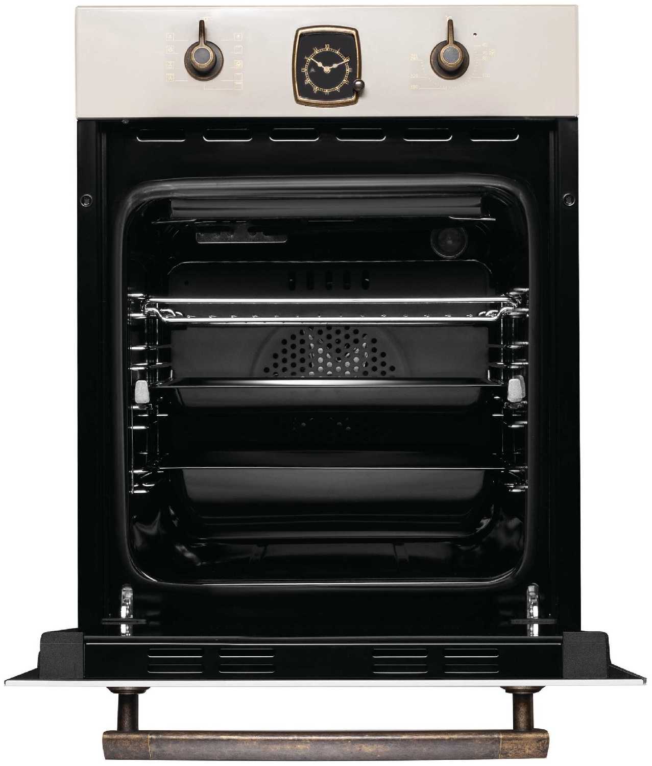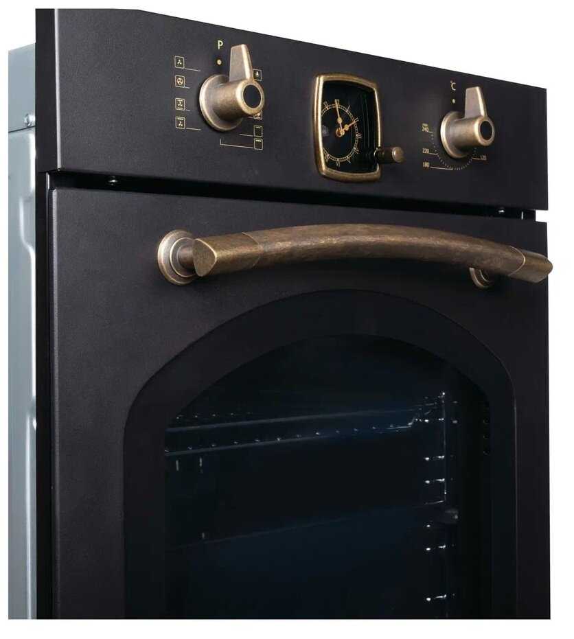 Модель оптимальна для ценителей ретро-дизайна с современной начинкой: бронзовые ручки, матовая черная/бежевая панель и арочное стекло создают стилистическую целостность с техникой Gorenje или Smeg. Вместимость 64 л (при глубине шкафа 45 см) позволяет запекать крупную птицу, но компактные габариты подходят для малогабаритных кухонь. Ключевое преимущество перед аналогами – комплексная термозащита (стекло, корпус, соседние поверхности) и наличие термощупа в базе. Проигрывает конкурентам (например, Bosch серии 8) в надежности электронных компонентов и скорости реакции сервиса. Идеальна для ежедневной готовки на семью 3-4 человека, особенно выпечки и блюд на гриле.