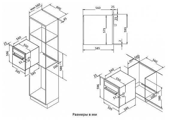 - + Духовой шкаф идеально вписался в мою маленькую кухню. При этом он функционален и вместителен.