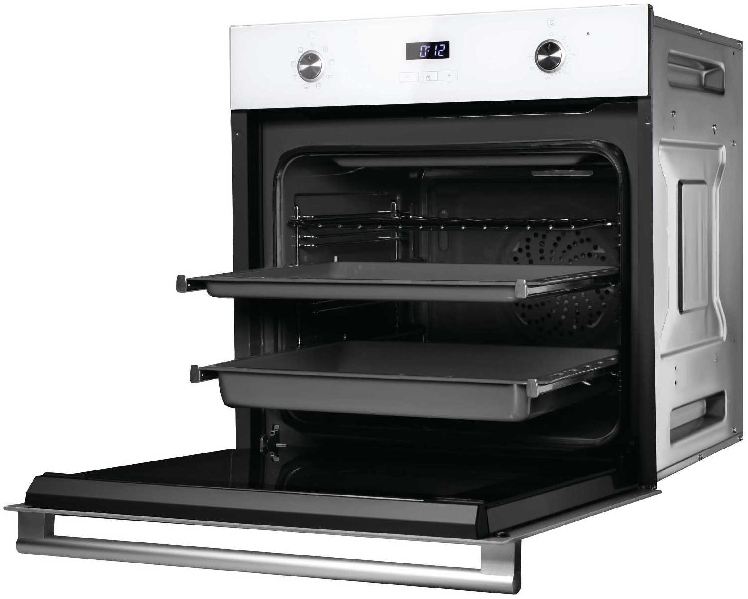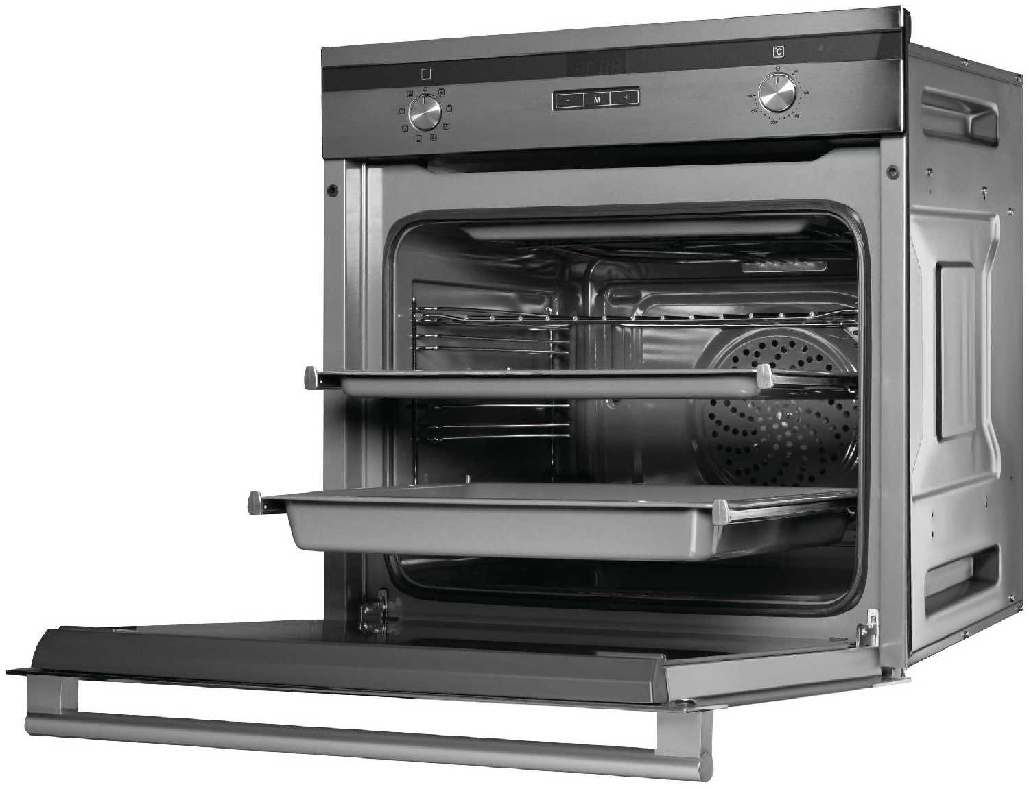 - Вмещает крупные продукты (гусь, индейка) и 2 противня одновременно.