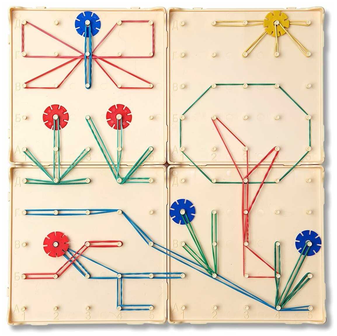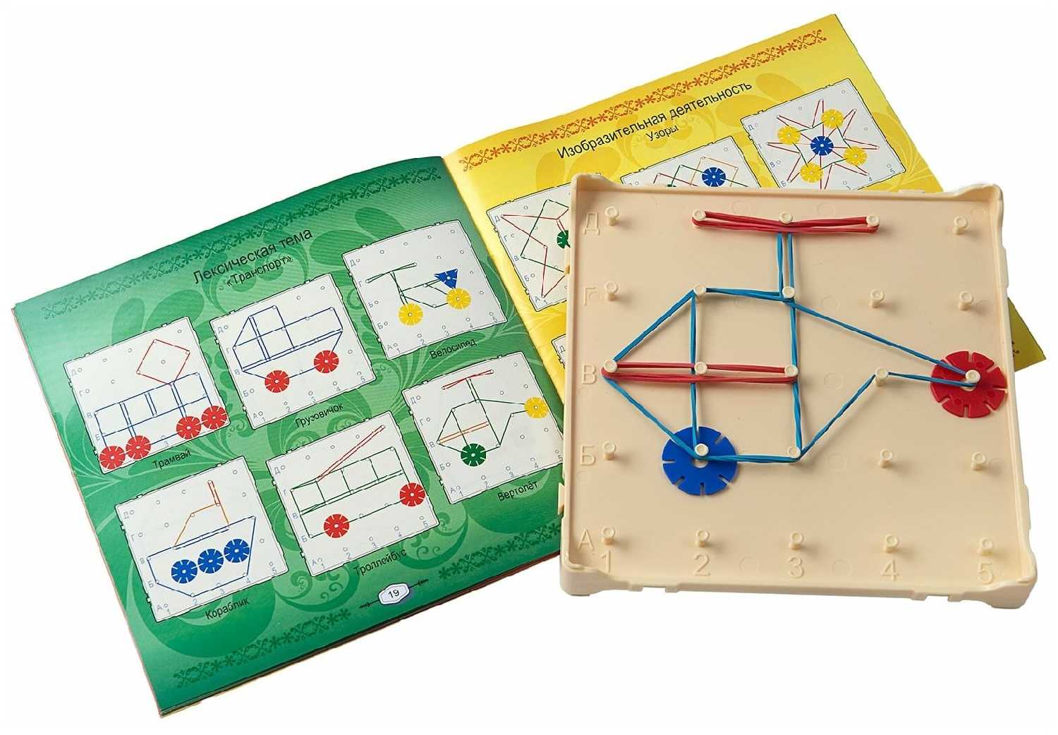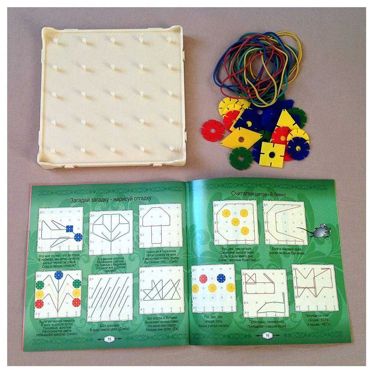 - + прекрасное обучающее пособие, эстетичное, красочное, тактильное, очень нравится детям. Многообразие вариантов использования, как с резиночками, так и с фигурами. Рекомендую