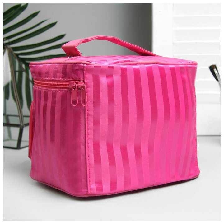 Сима-ленд Косметичка-сундучок Полосы, 25*15*16, отд на молнии, н/карман, зеркало, малиновый 3722176