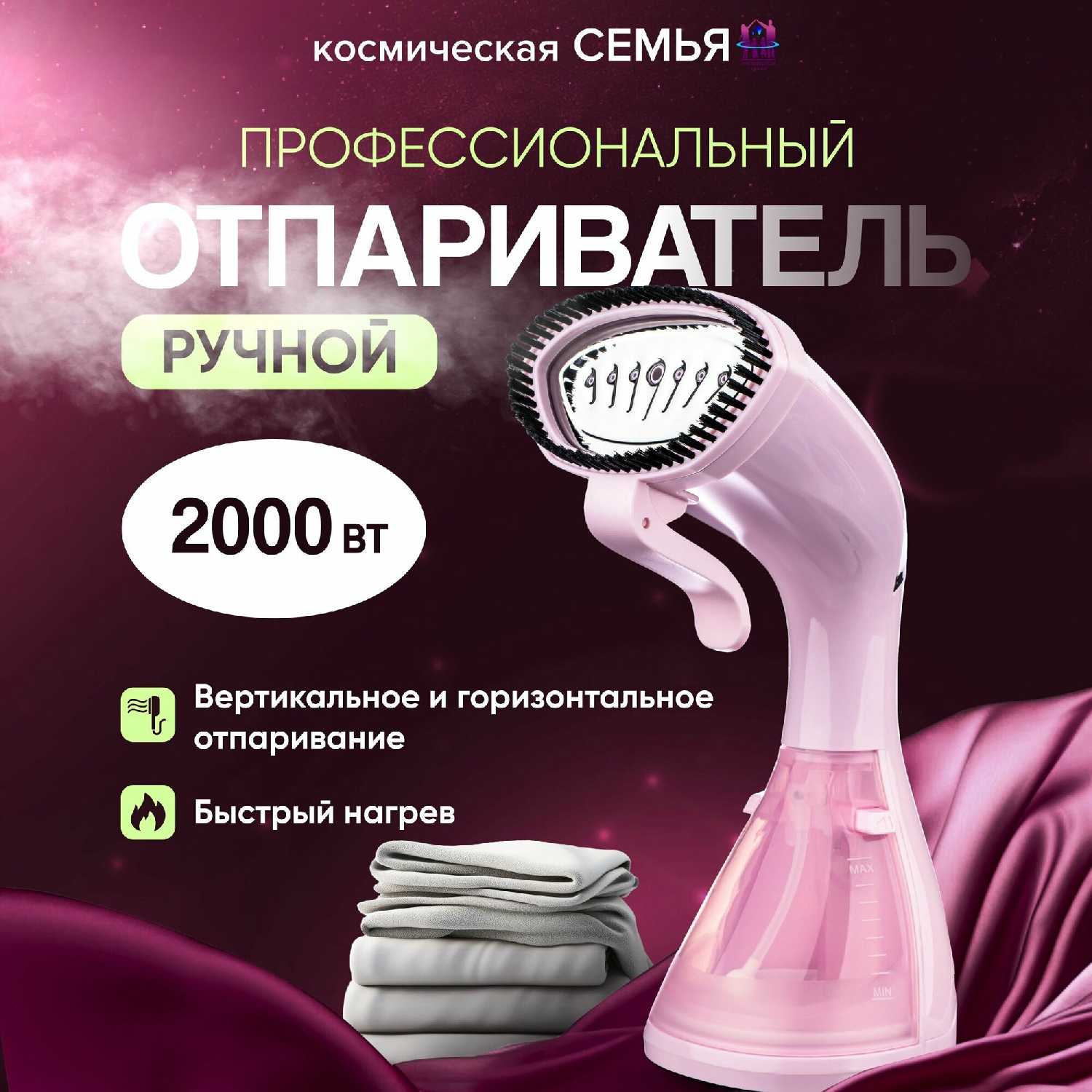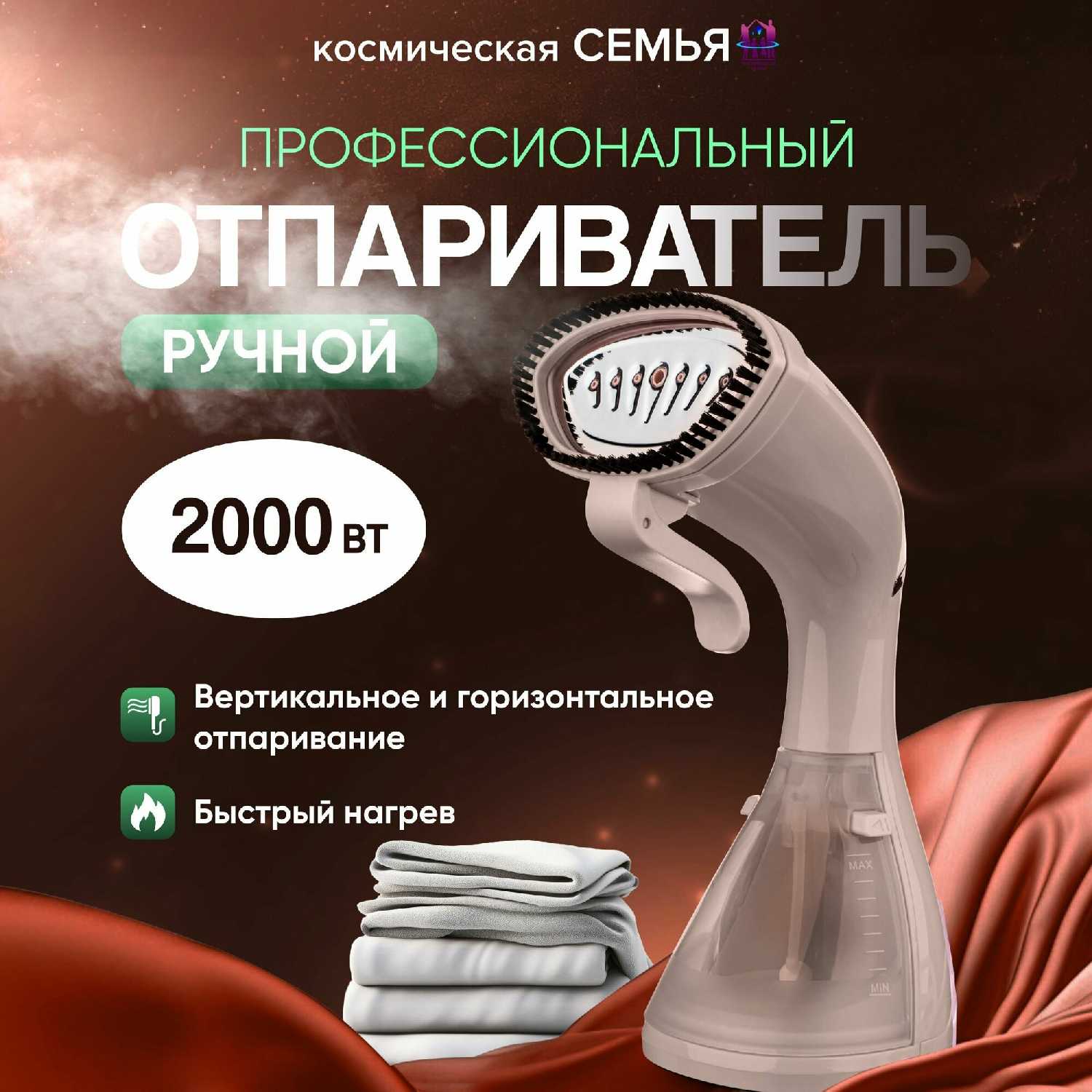 Обзор Космическая семья Отпариватель ручной (с насадкой щёткой)*:
