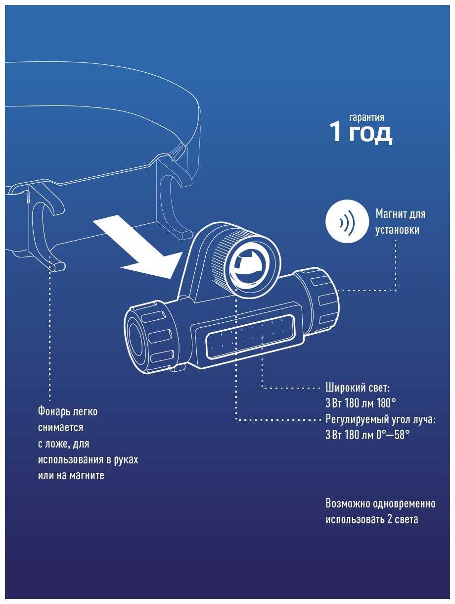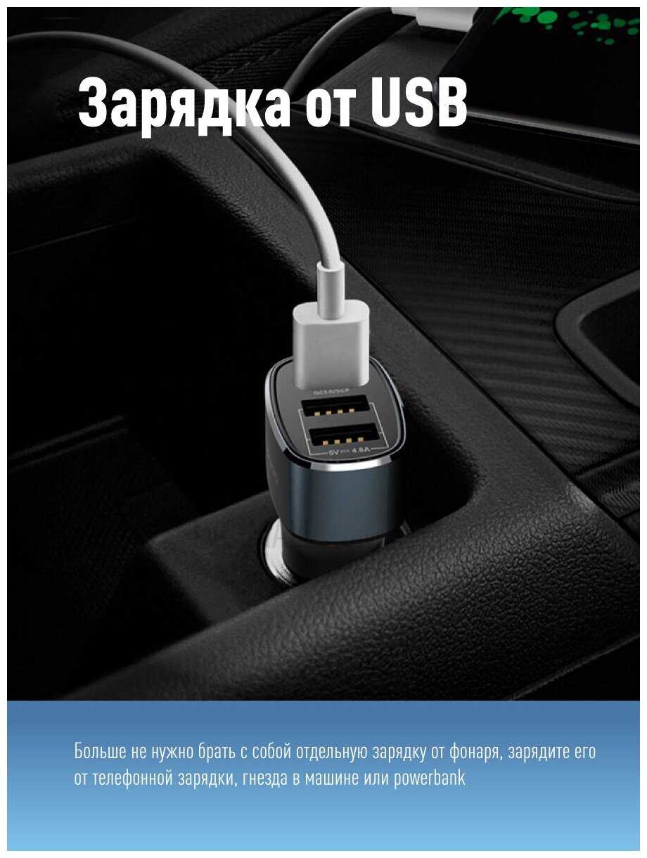 | Особенности : | влагозащита, кабель USB, регулировка угла свечения |