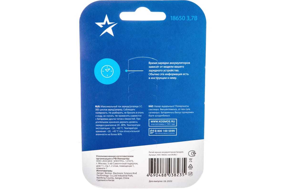 Характеристи КОСМОС 18650Li-ion34UBL1