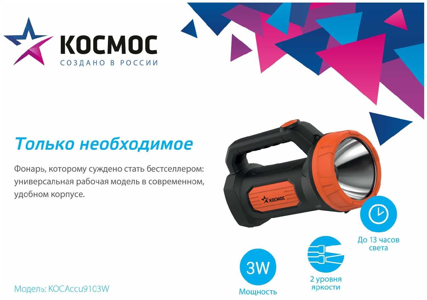 Отзывы о Комплект Фонарь светодиодный аккумуляторный Космос KOCAccu9103W