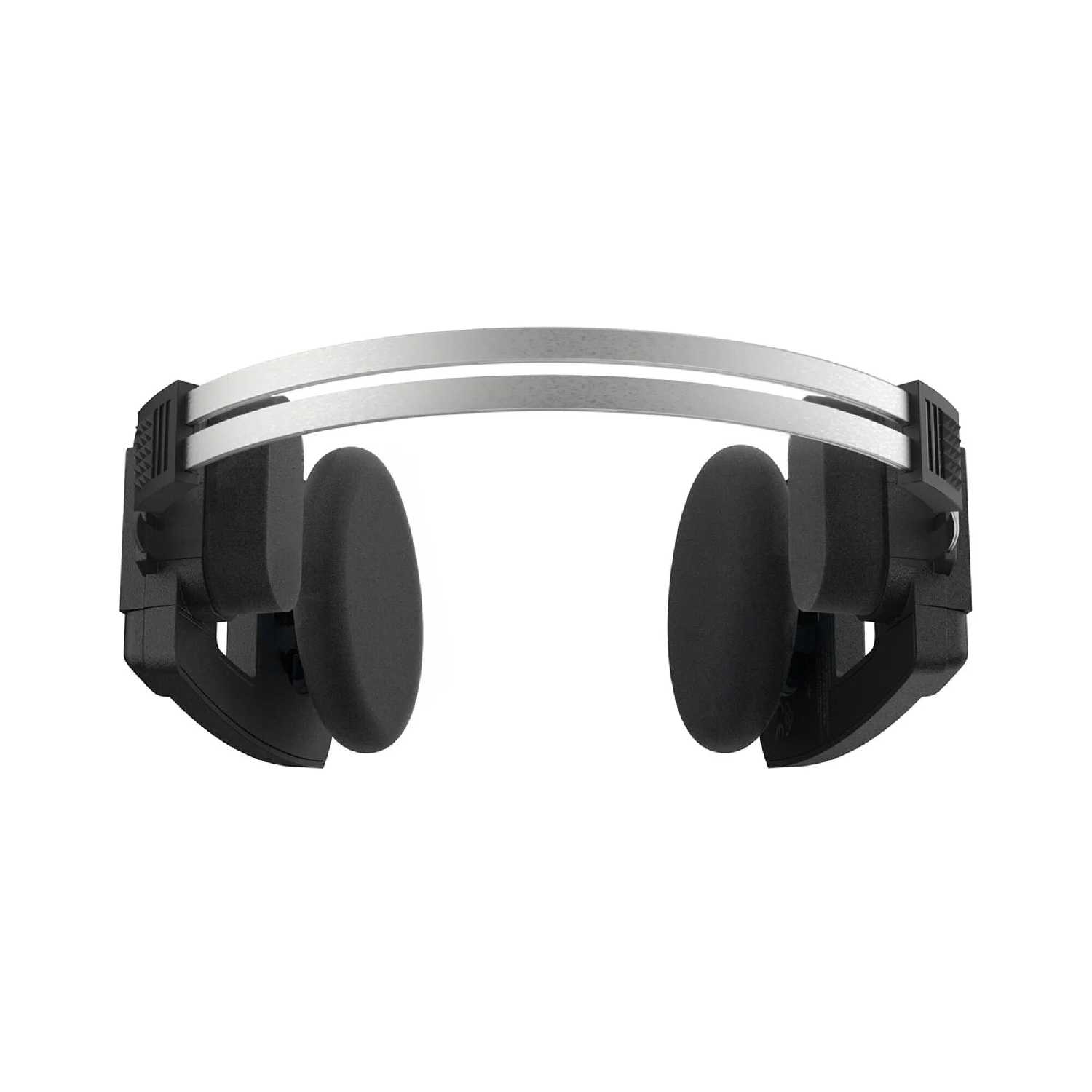 - - Прижим сверху может давить на виски, приходится выбирать между давлением на уши и на виски. Качество исполнения странное, многие элементы кажутся хрупкими; провод очень тонкий, его старался лишний раз не трогать. Амбушюры и пластиковые детали лёгкие и выглядят дешёво, сами амбушюры напоминают те, что ставят в дешёвых проводных наушниках. В инструкции не объяснено назначение рычагов над амбушюрами и какие положения за что отвечают (голубой — свободный охват, белый — плотный), пришлось искать видеообзор. Нет фиксации раздвижного ободка, каждый раз его приходится подстраивать ⚠️.