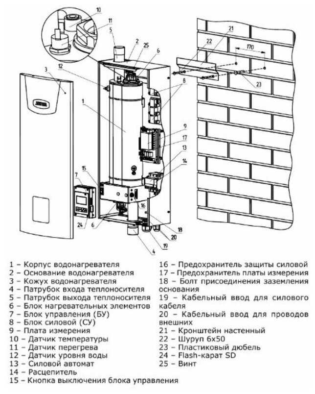 Характеристики:- тип отопительного котла: электрический