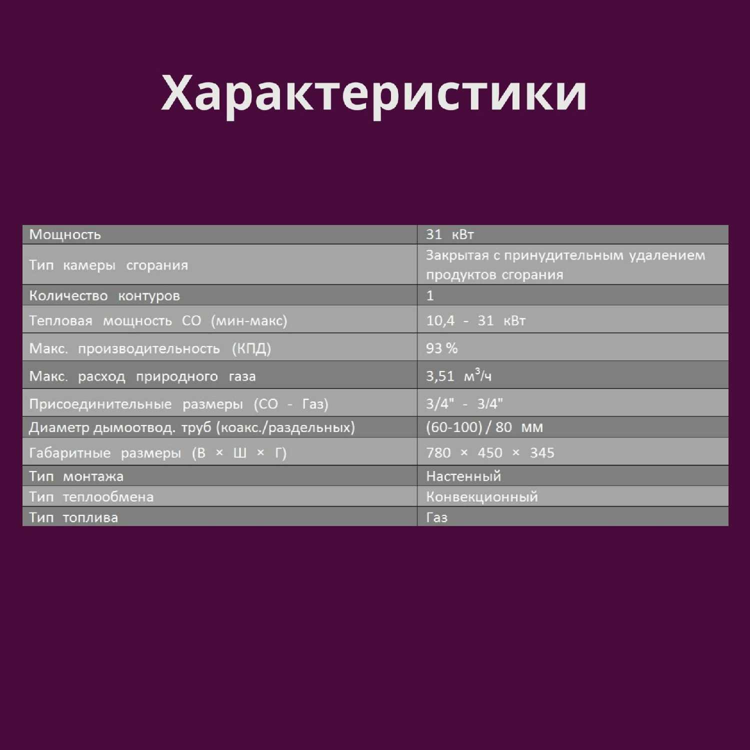 Характеристики:- тепловая мощность: 14.90 - 29.70 кВт