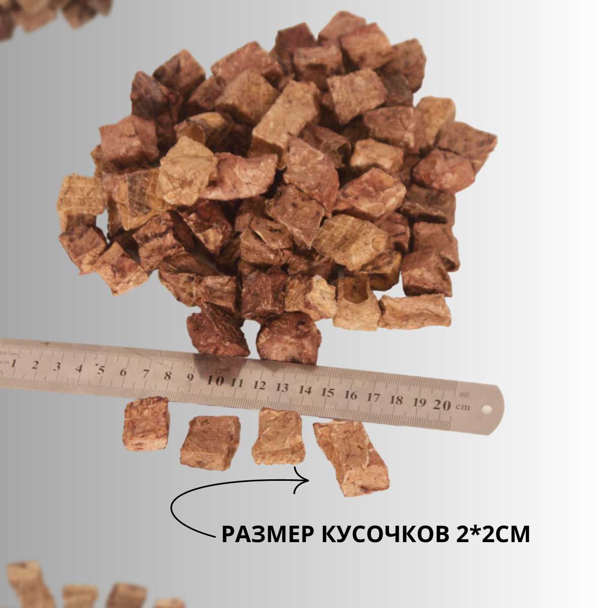 Я стала разрезать кусочки на части и обнаружила, что есть такие элементы, которые могли бы поранить собаку. На фото кость. 2. Кусочки легкого пересушены