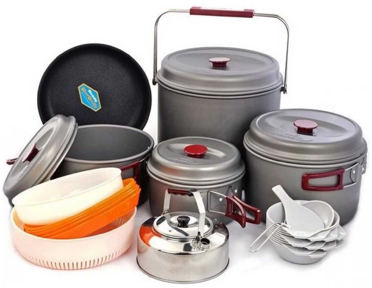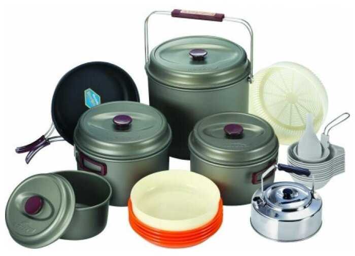 Дополнительная информация : | подробная комплектация: кастрюля с крышкой 8, 5 л, кастрюля с крышкой 4, 2 л, кастрюля с крышкой 2, 8 л, кастрюля с крышкой 1, тефлоновая сковорода, чайник, дуршлаг, пластиковая пиала 7 шт., пластиковая тарелка 5 шт., складной половник, лопатка, чехол для транспортировки |