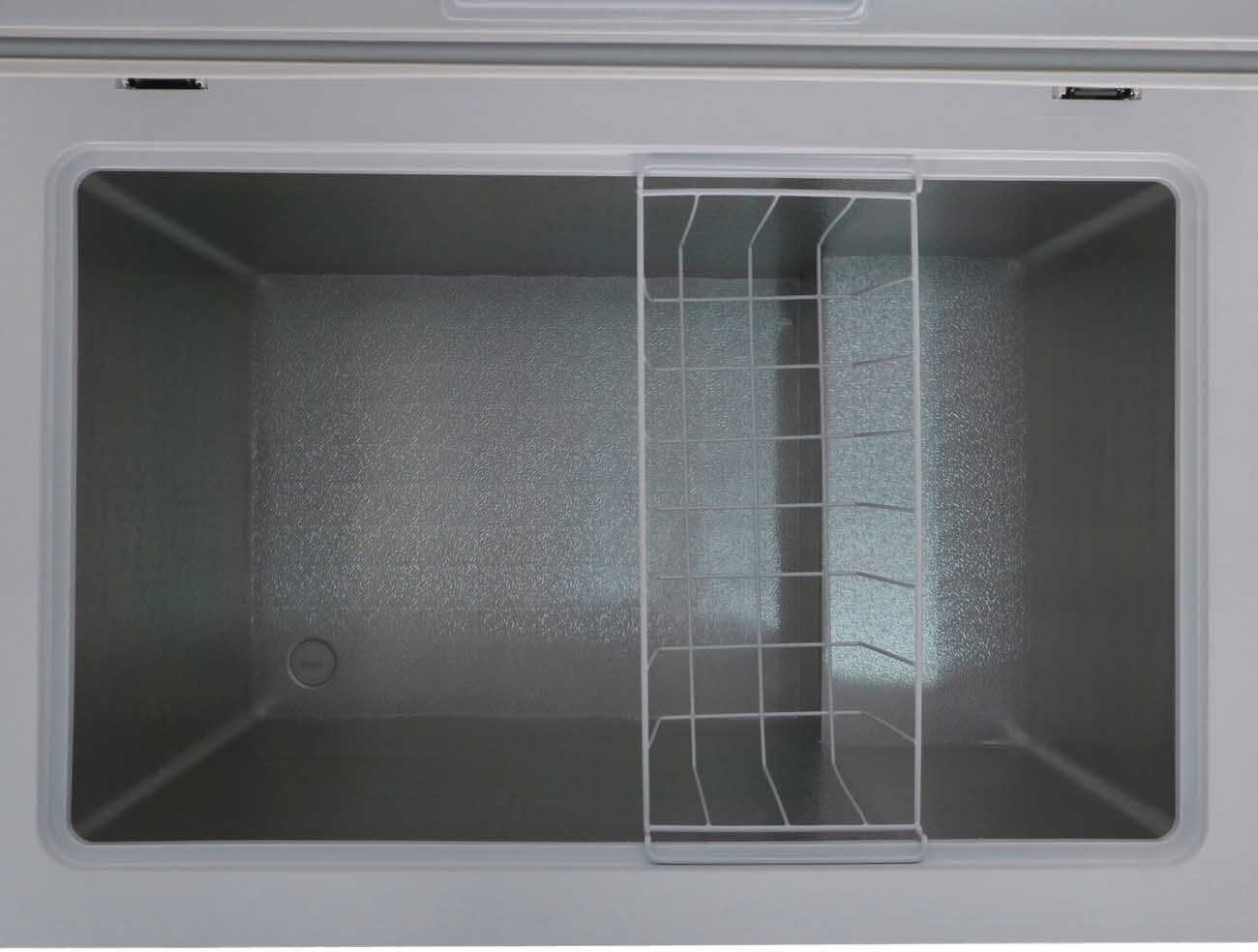 - + Морозильная камера представляет собой ларь с одним отсеком полезным объемом 210 л внутри. Степень замораживания составляет 9 кг/сутки. Модель функционирует в режиме суперзамораживания. Устройство оснащено механическим способом управления, сенсорным дисплеем, расположенным снаружи
