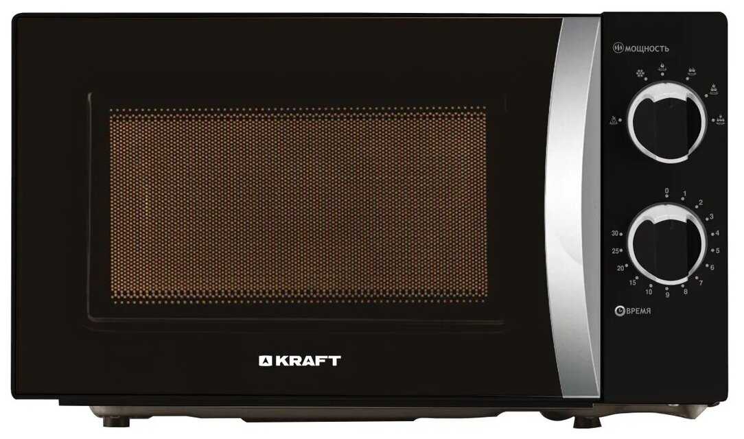- + Компактная микроволновая печь Kraft с мощностью излучения 700 ватт и внутренним объемом 20 литров отличается простым и удобным электромеханическим управлением.