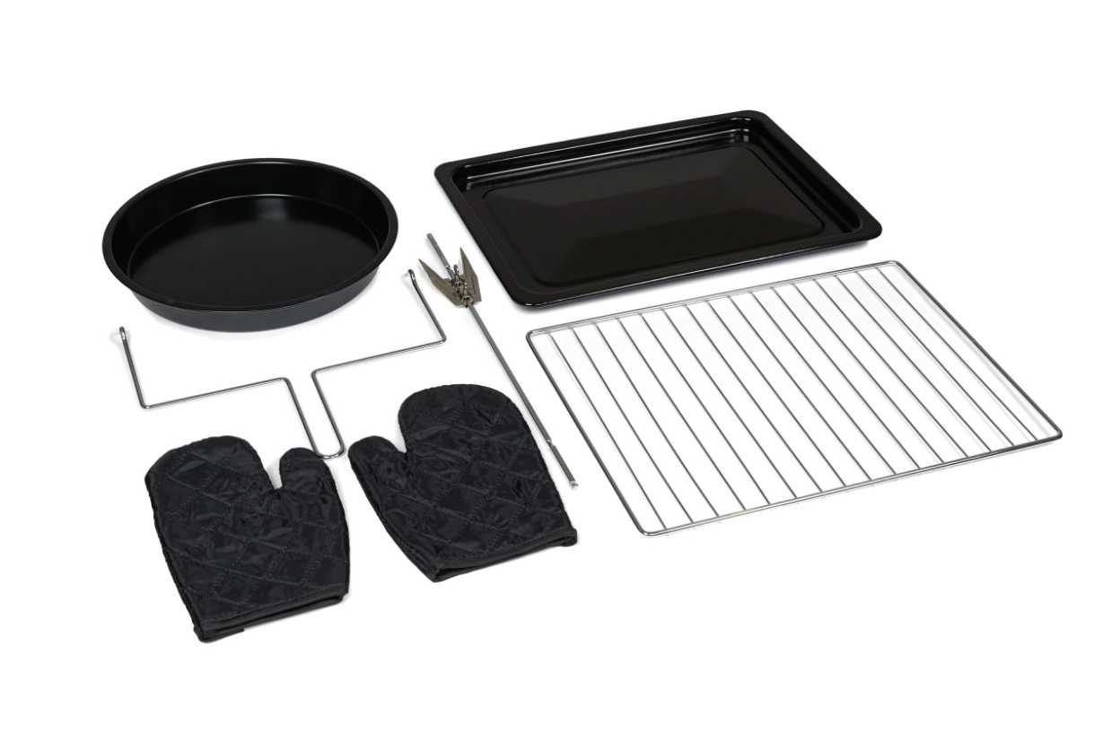 | В комплекте : | вертел, круглый противень, поддон для сбора крошек, противень, решётка, ухват |
