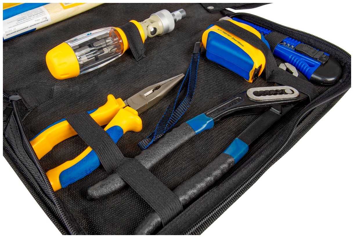 Классный комплект инструментов, сумка удобная, все на своем месте. Рукоятки удобные, оплетка на них качественная, рука не скользит. В работе попробовал, все нравится. Подойдет и для ремонта, и для сборки мебели, в общем, для любых бытовых надобностей. Каждый предмет крепится на своем месте в специальной плотной сумке. Очень удобно для транспортировки и для хранения, ничего не потеряется.