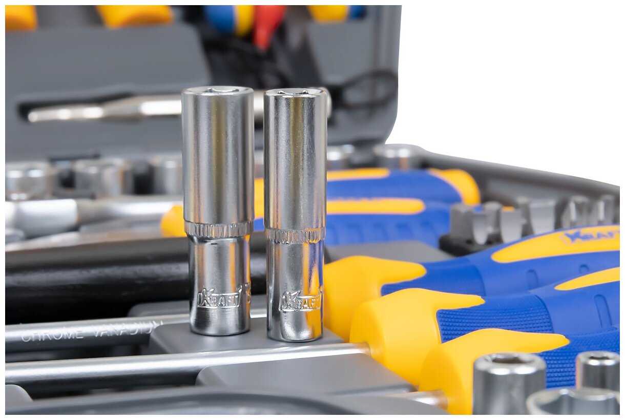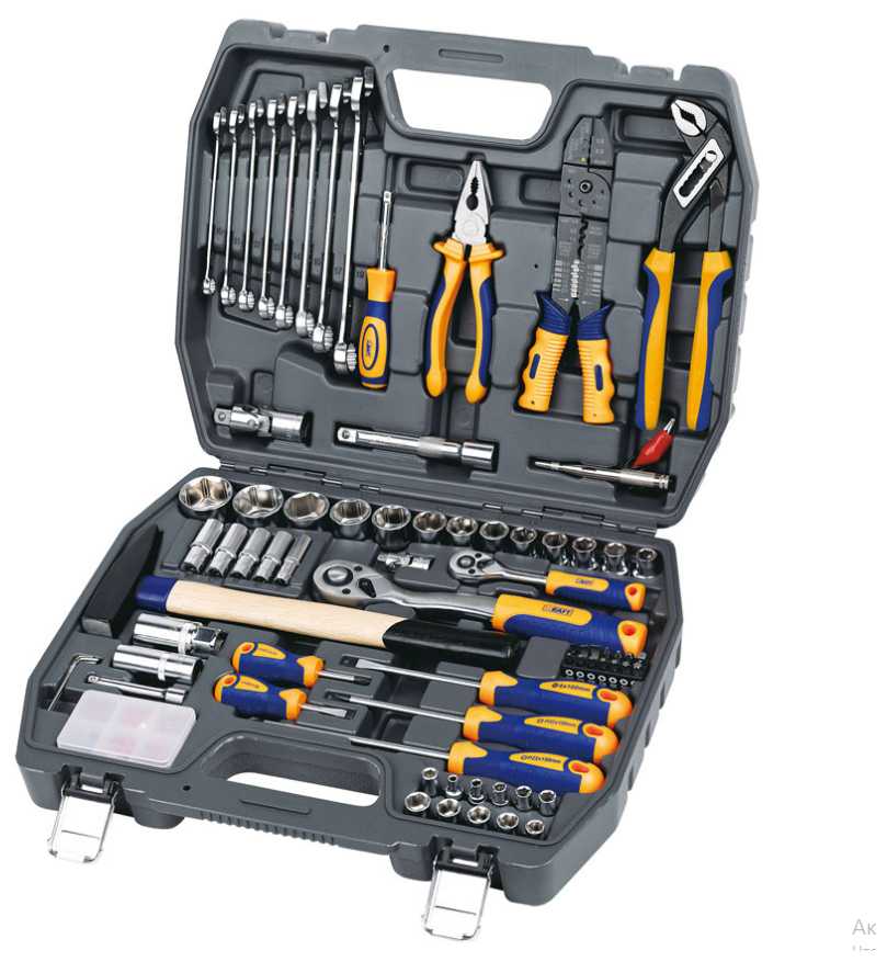 Аксессуары в комплекте : | гибкий удлинитель для головок, отвертка индикаторная, удлинитель для головок, шарнир карданный для головок |