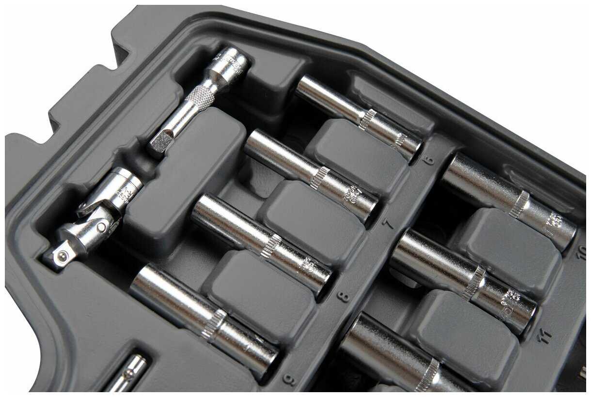 | Аксессуары в комплекте : | держатель для бит, переходник для головок, удлинитель для головок, шарнир карданный для головок |