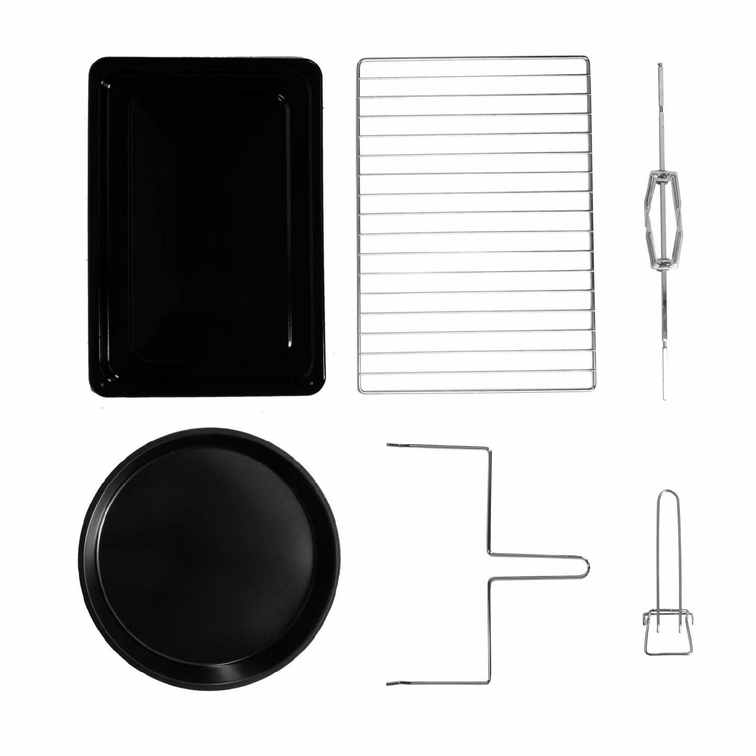| В комплекте : | вертел, круглый противень, поддон для сбора крошек, противень, решётка |