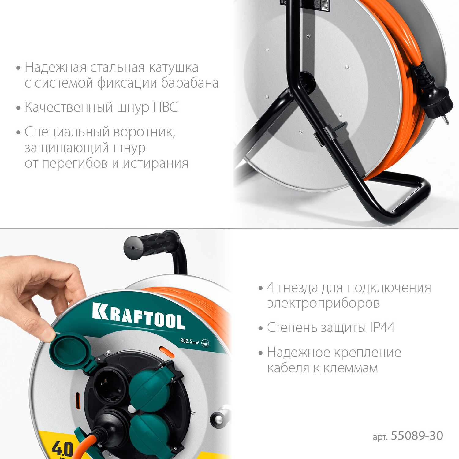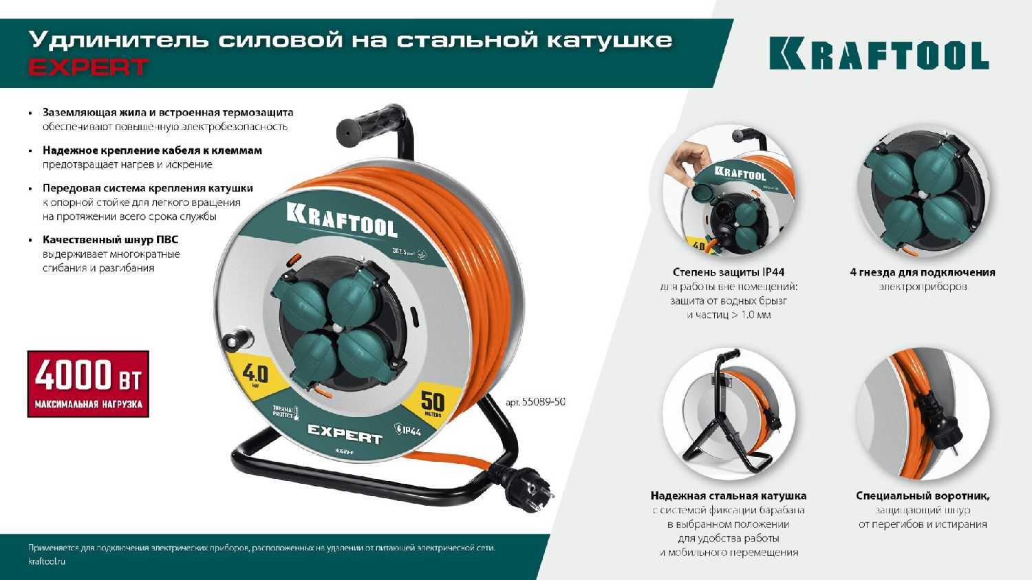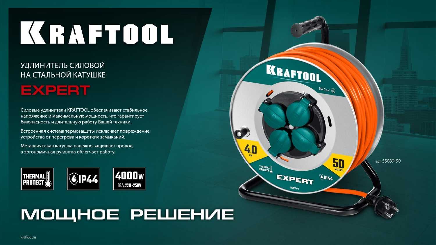 Отзывы о Удлинитель на катушке Kraftool 55086-50 [16А / 3700 Вт]