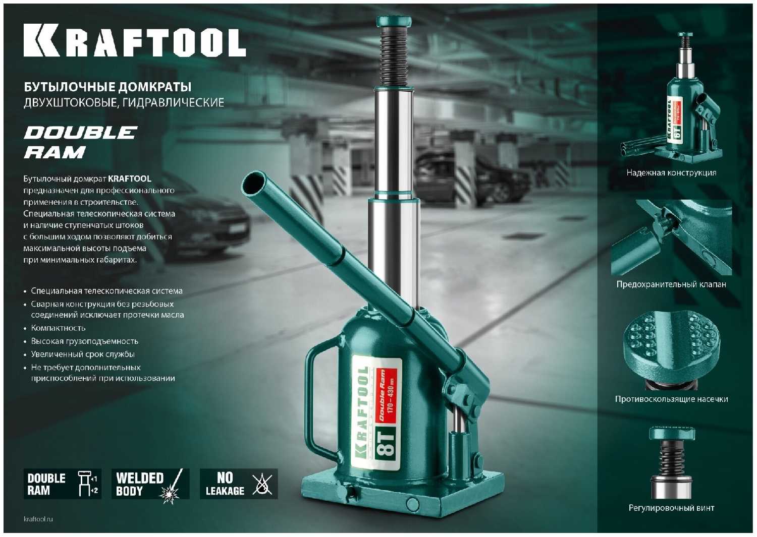 Отзывы о Домкрат бутылочный гидравлический Kraftool Double Ram (43463-10)