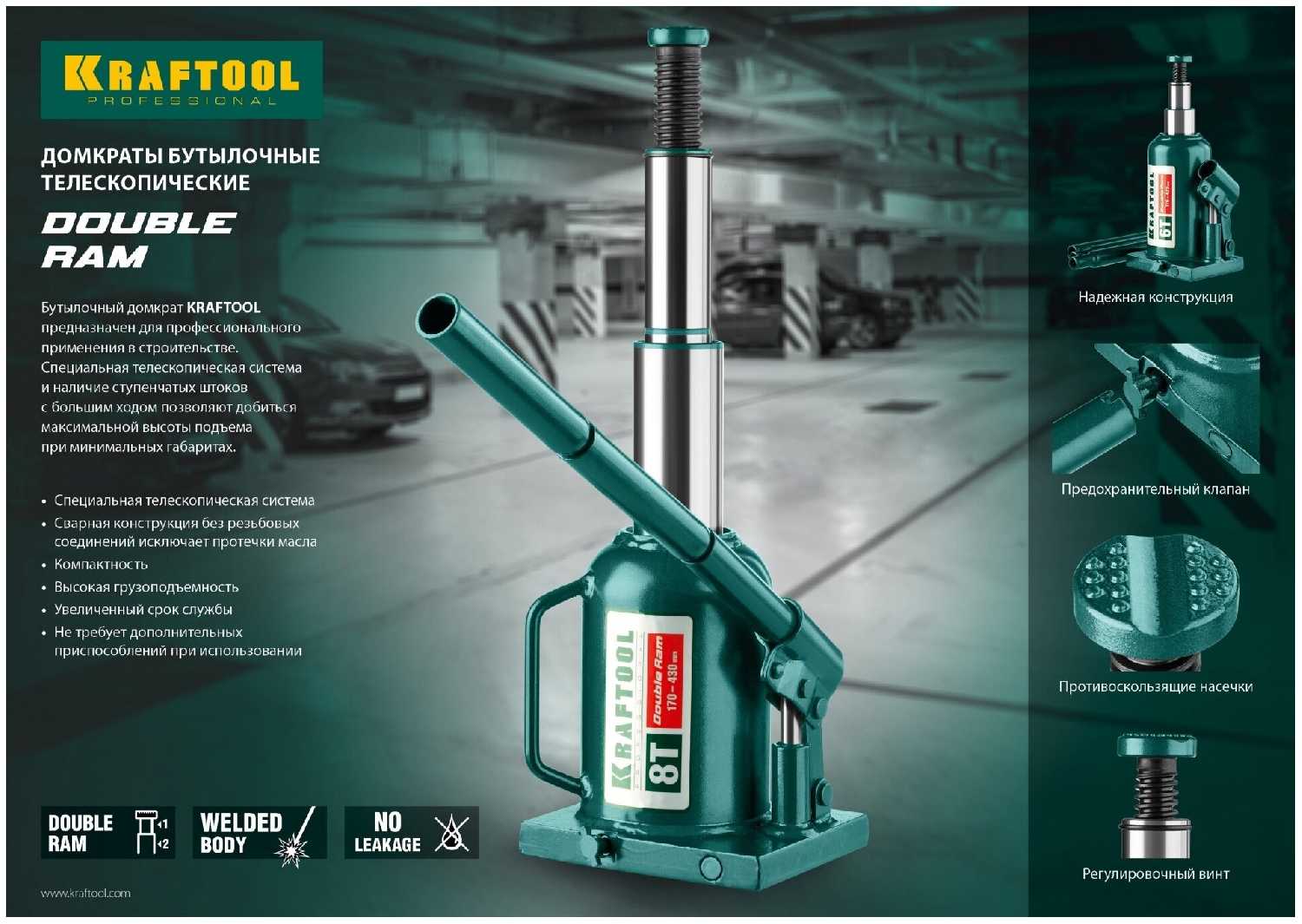 Отзывы о Домкрат бутылочный гидравлический Kraftool Double Ram (43463-8)