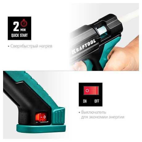 По отзывам пользователей, пистолет нагревается очень быстро — большинство отмечает оперативную готовность к работе. Однако при комнатной температуре 24°C полный прогрев занимает около 5 минут, что может отличаться от заявленных 2 минут. После отключения от сети инструмент сохраняет тепло еще 15–20 минут, позволяя продолжать работу автономно. -