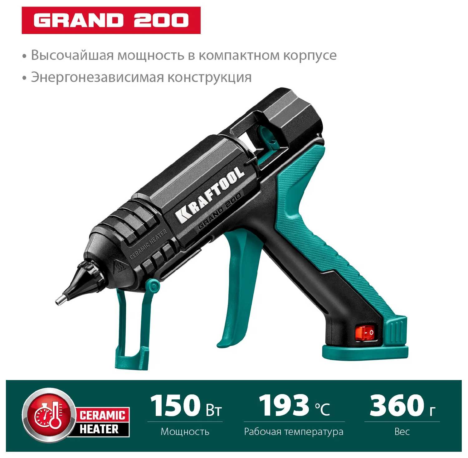 - Металлическое сопло с термоизоляцией снижает риск случайных ожогов от вытекающего клея.