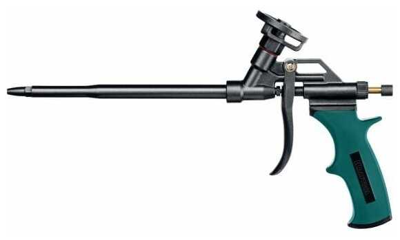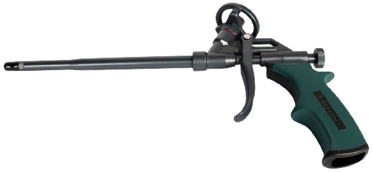 Отличный пистолет для монтажной пены. Полностью металлический механизм подачи пены с прорезиненой пластиковой ручкой ручкой. Весьма удобно лежит в руке и не очень тяжёлый. Рекомендую