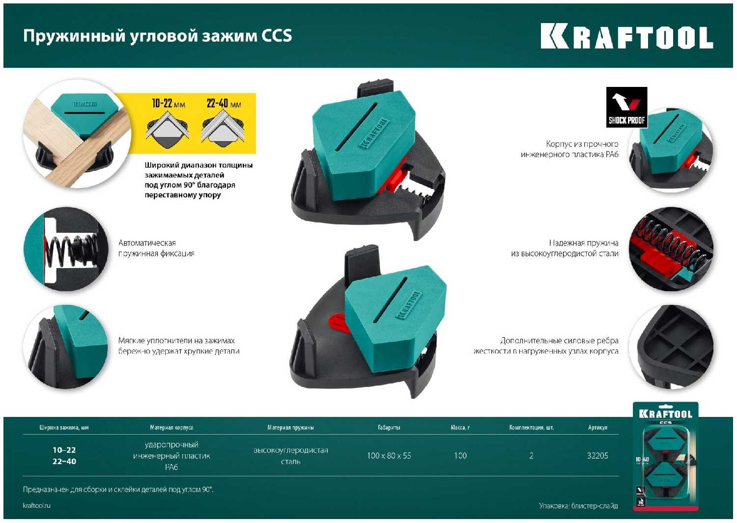 Характеристи Kraftool Пружинный угловой зажим (32205)