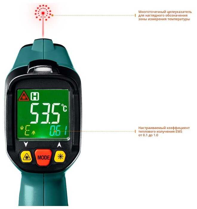 | Функции и особенности : | автоматическое отключение, измерение высоких температур, лазерный прицел, световая индикация |