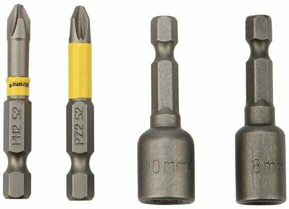| Биты подробно : | 50 мм: PH2 PZ2, 48 мм с головками: 8 10 мм |