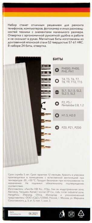 | Размер наконечника Torx : | T10, T15, T4, T5, T6, T9, Т7, Т8 |