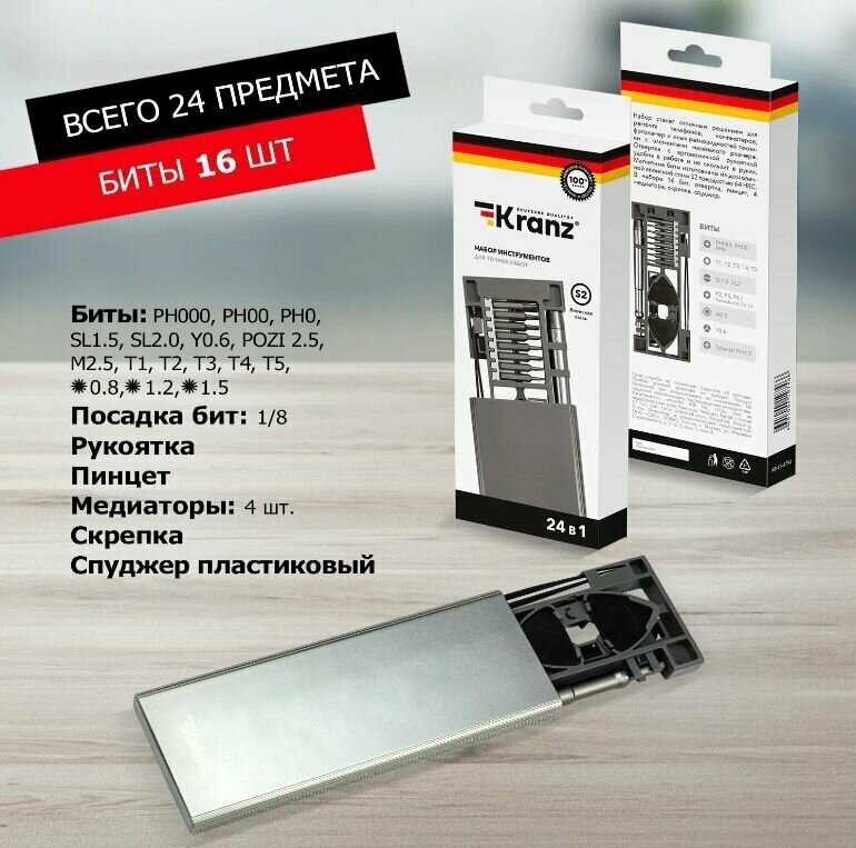 - + Кейс алюминиевый. Открывается одним нажатием. Биты отличные, магнитные. Удобная отвертка. Биты не выпалывают.