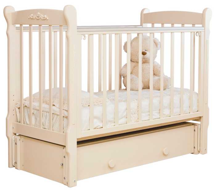 - + отличная кроватка регулируемая спинка, закрытый ящик,бесшумность, равномерное качание...просто суппер