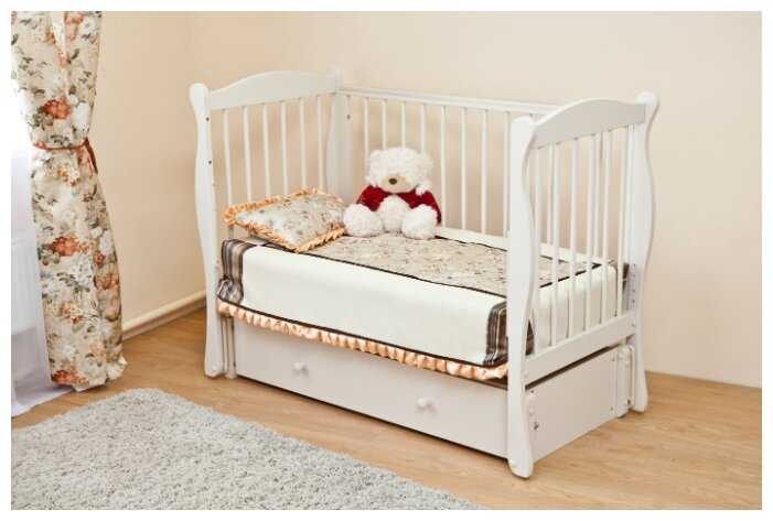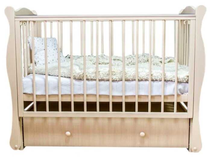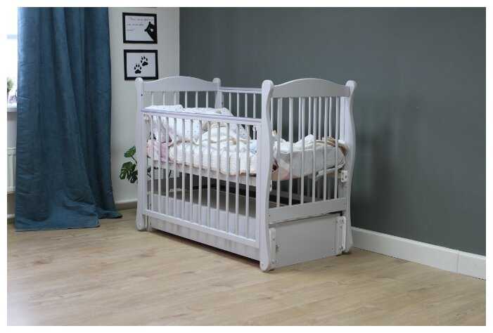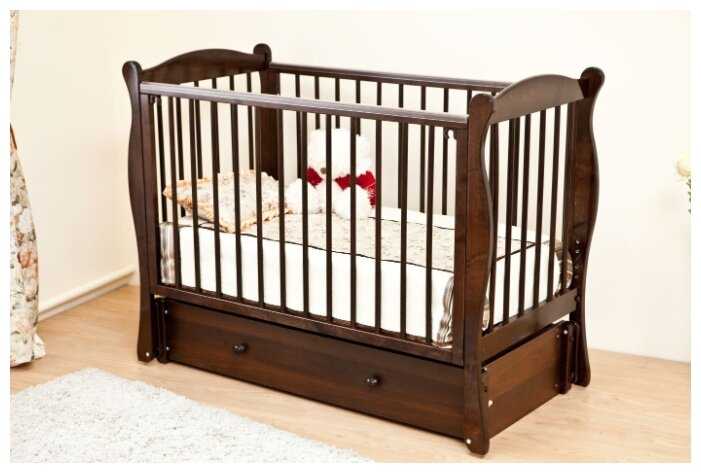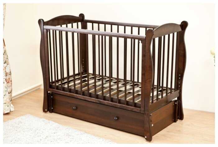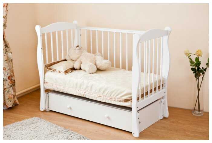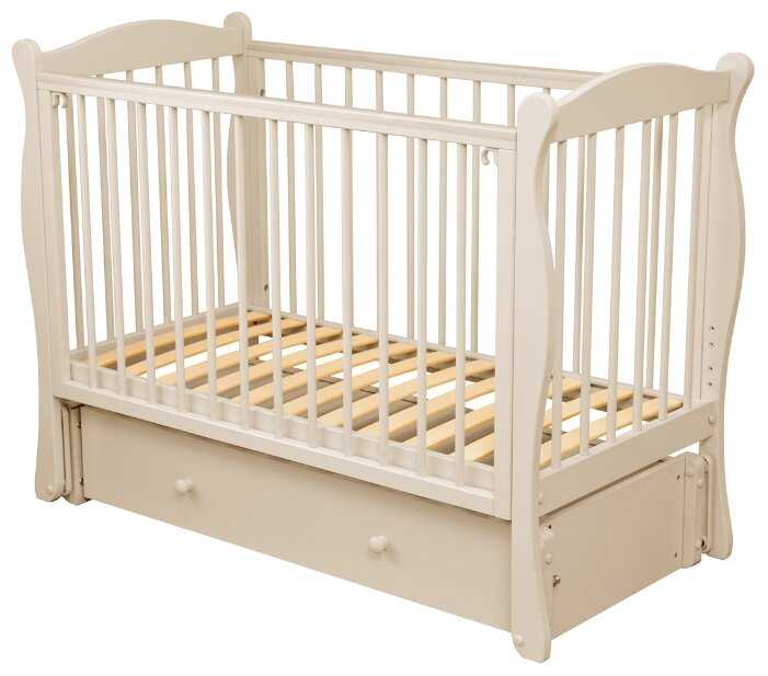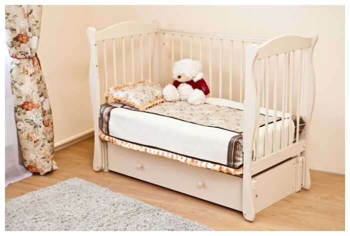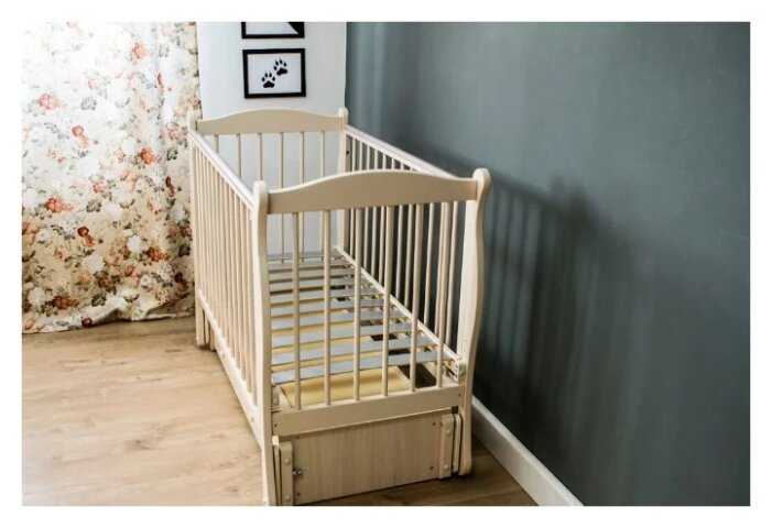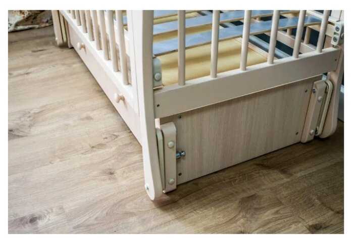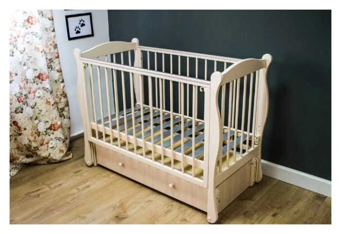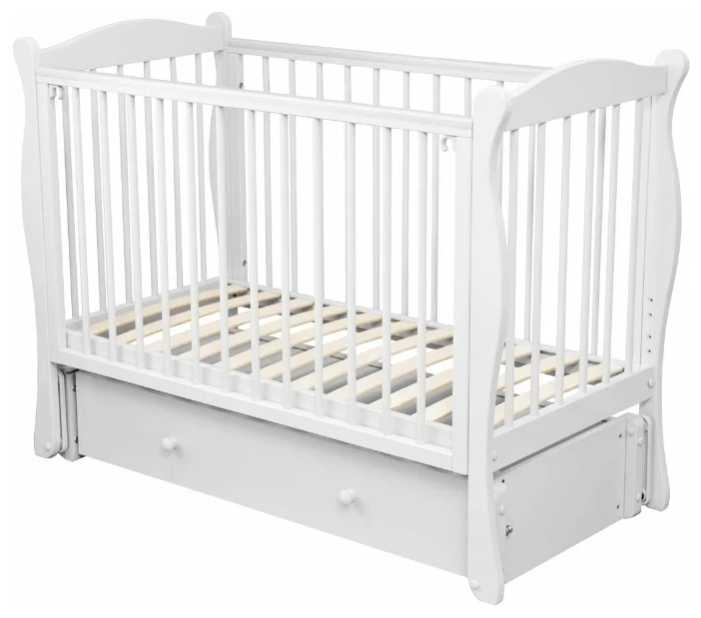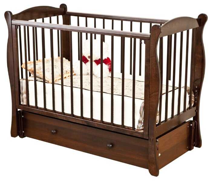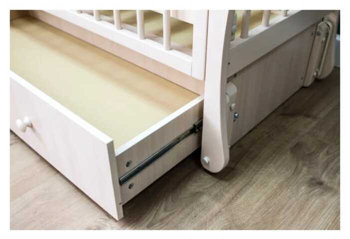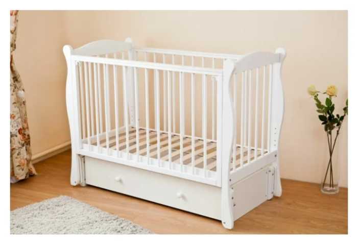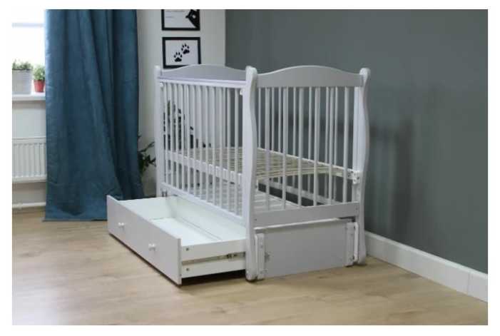 - классическая кроватка выдвижной ящик каркас из дерева и МДФ маятниковый механизм качания размеры 65x133x102 см размер матраса 60x120 см опускающаяся передняя стенка