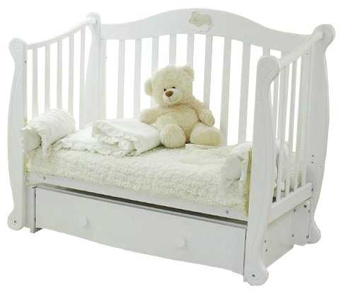 - + Шикарный внешний вид, качественная отделка - брали античную слоновую кость, очаровательный декор - спящий на облаке мишка, бесшумный маятник, закрытый вместительный ящик, ограждение легко снимается, есть 2 съемные рейки, 3 уровня ложа