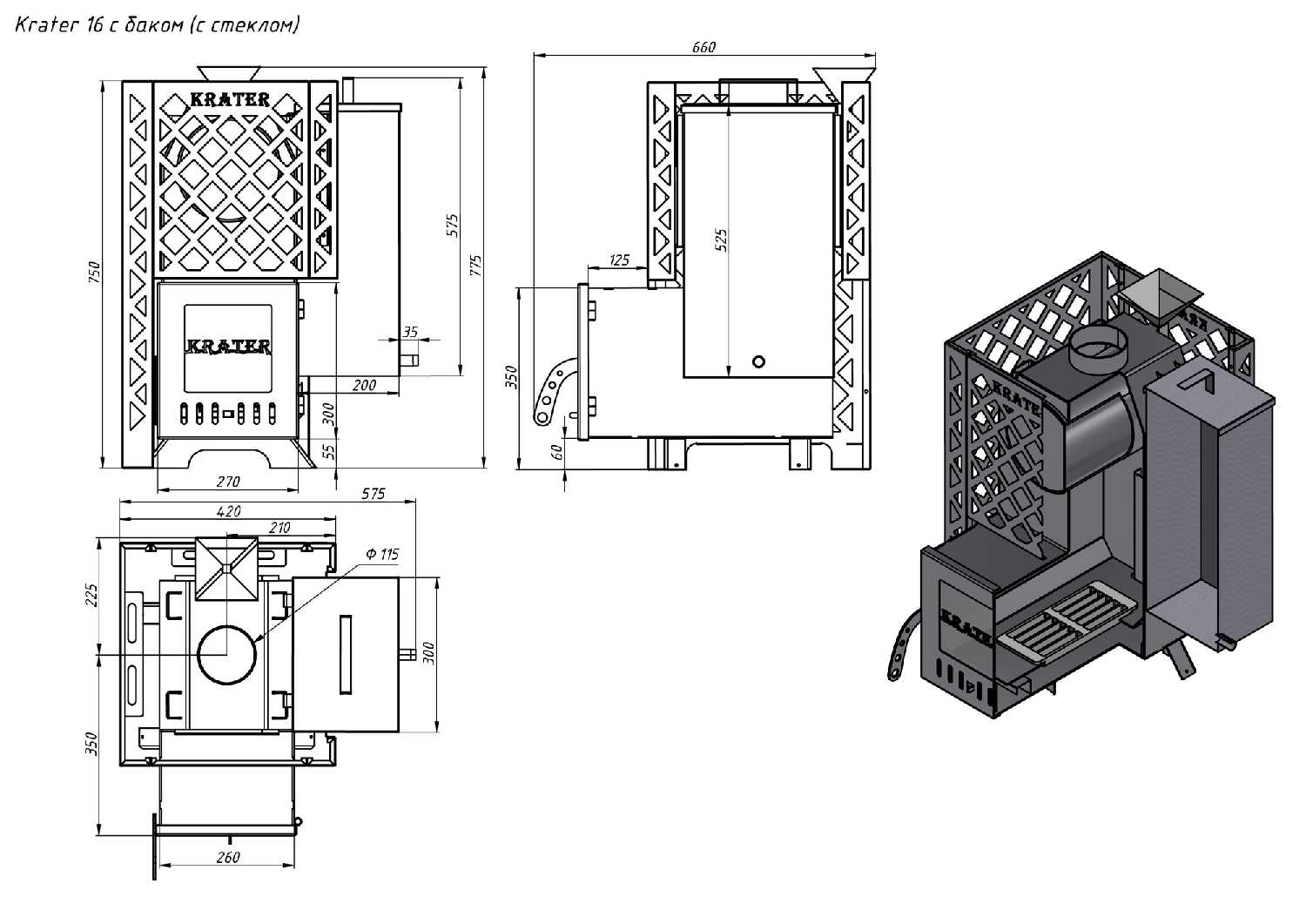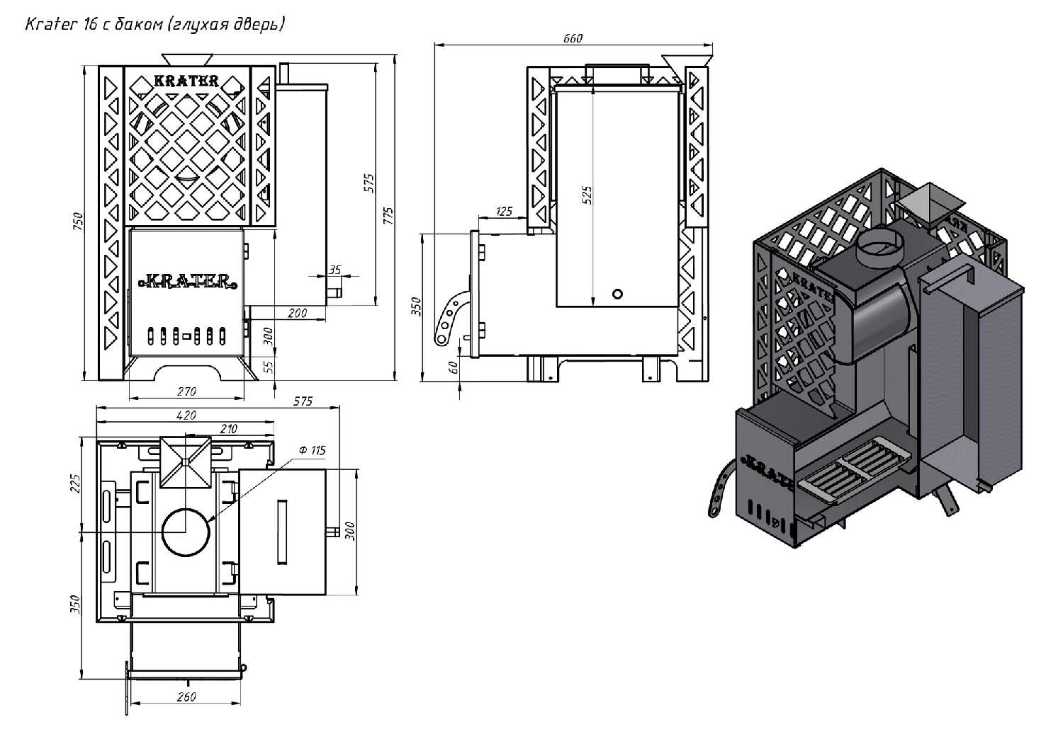 | Дополнительная информация : | Печь для бани дровяная "Кратер 12С" бак диаметр 115 |