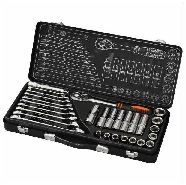 Аксессуары в комплекте : | гибкий удлинитель для головок, удлинитель для головок, шарнир карданный для головок |