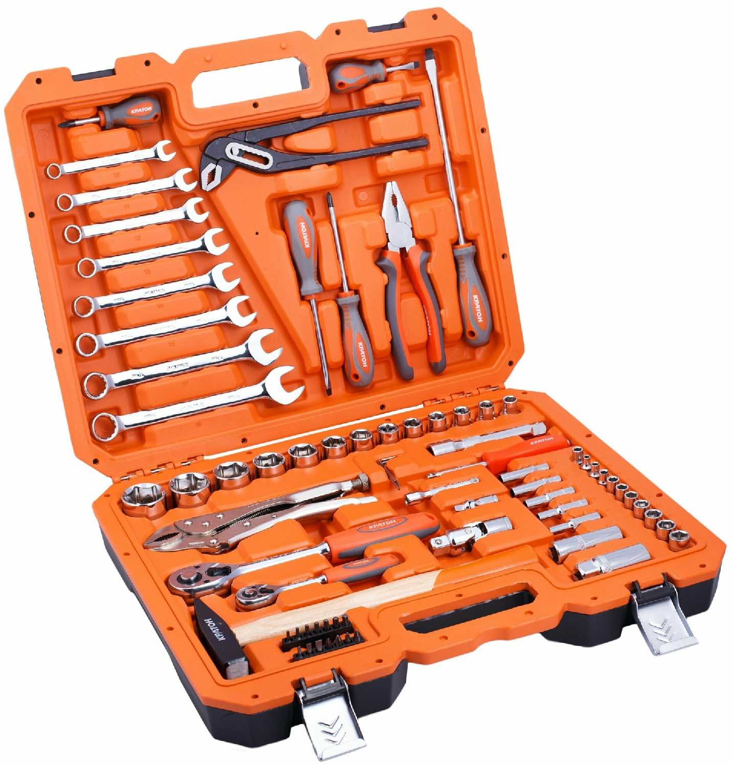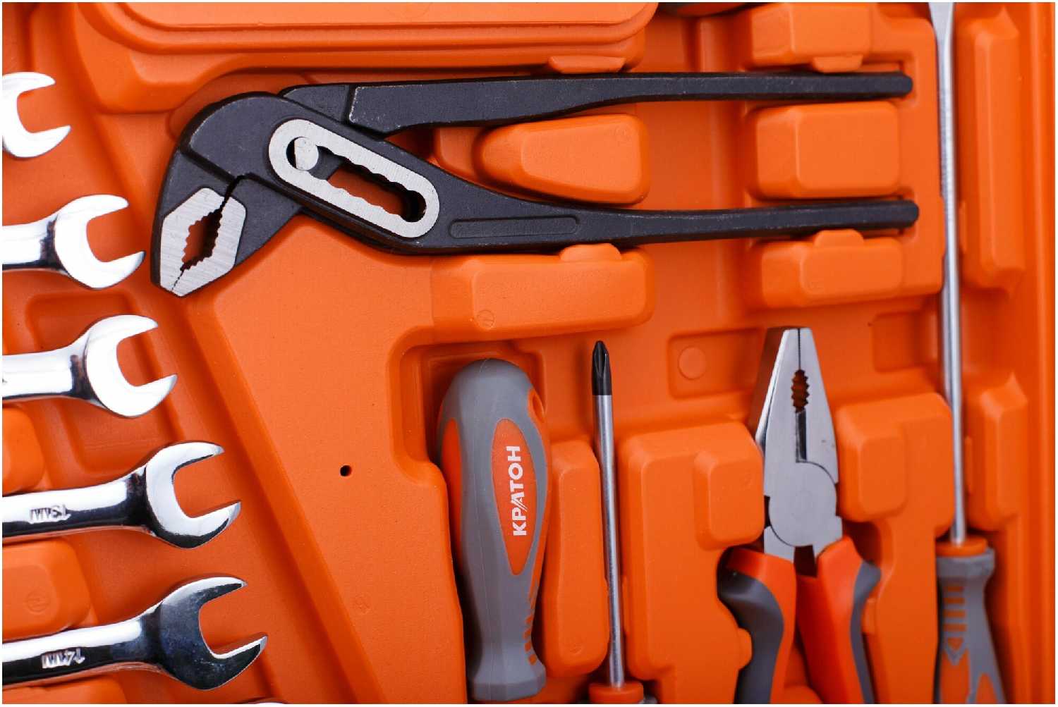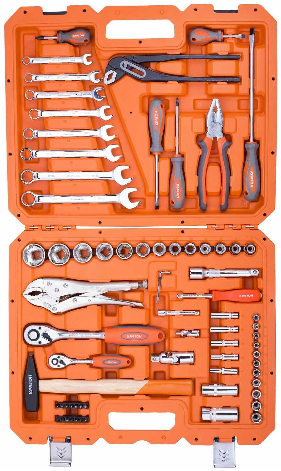 | Инструменты в комплекте : | бокорезы, вороток для головок, клещи, клещи переставные, ключи гаечные, ключи имбусовые (шестигранные), ключи торцевые, молоток, отвёртки, пассатижи, плоскогубцы, рукоять для бит, рукоять для головок, тонкогубцы, трещотка |