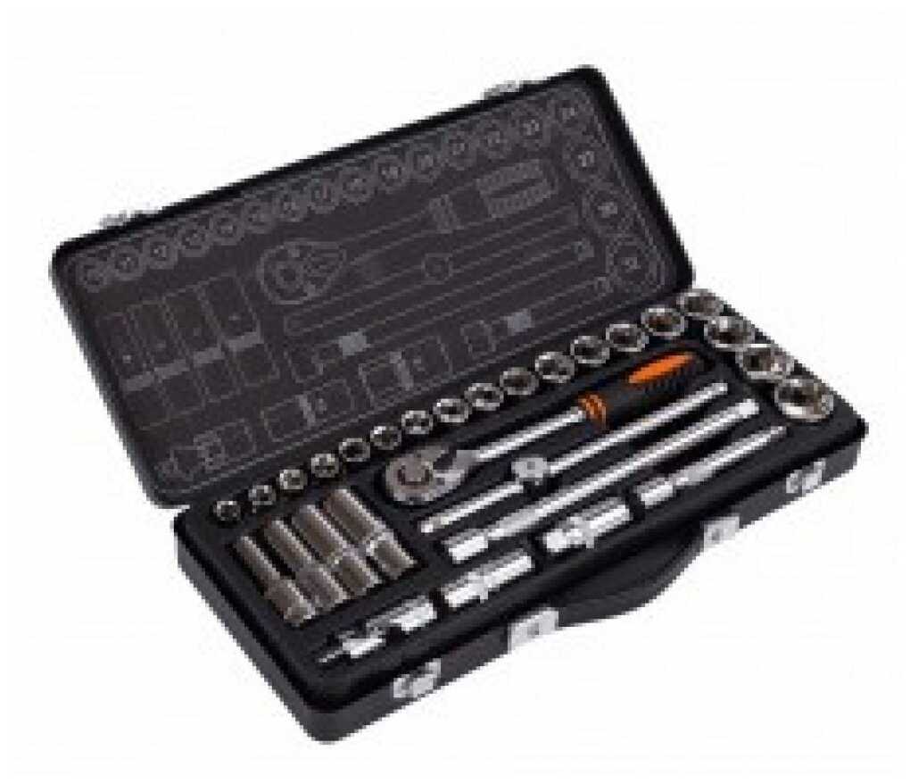 | Головки торцевые подробно : | 1/2": 8 10 11 12 13 14 15 17 19 22 24 мм, удлинитель 1/2": 125 250 мм, карданный шарнир 1/2", вороток т-образный 1/2", свечные 1/2": 16 21 мм, трещетка 1/2": 72 зуба |