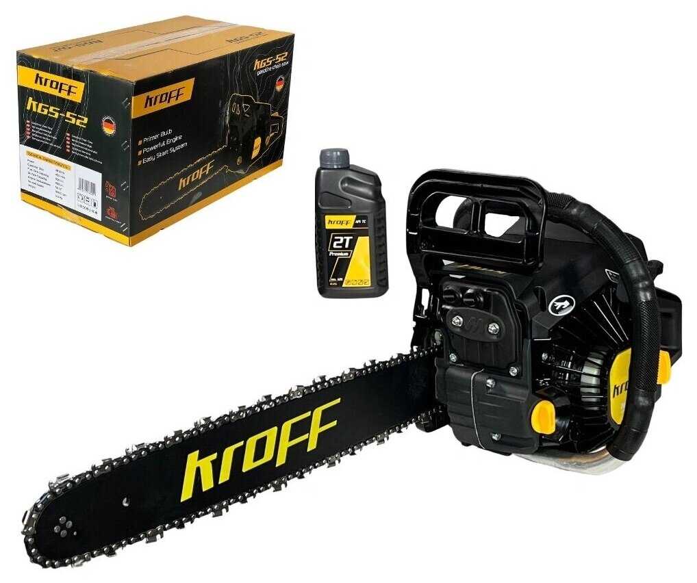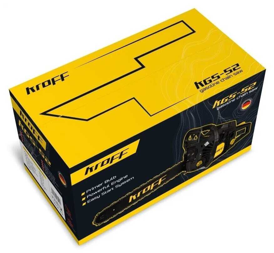 Комплект поставки : | Пила бензиновая - 1 шт, шина Kroff 18 дюймов 45 см (450 мм) - 1 шт, цепь для бензопилы 18 дюймов 45 см (72 звена) - 1 шт, защитный кожух для цепи - 1 шт, набор инструментов - 1 шт, напильник заточный для цепи - 1 шт, инструкция - 1 шт, мерная баночка - 1 шт, гарантийный талон - 1 шт, упаковка |