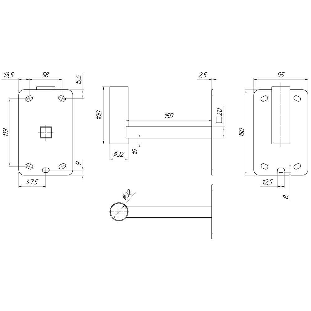 - + Узкая площадка, можно прикрутить на раму окна, столб или стойку (куда не поместится квадратная площадка формата vesa). Есть возможность регулировки (хоть мне она и не нужна, т.к. шарнир есть у самой антенны). Металл толстый, выдержит дополнительный вес (к примеру на этот же кронштейн камеру повесить), ничего не деформируется.