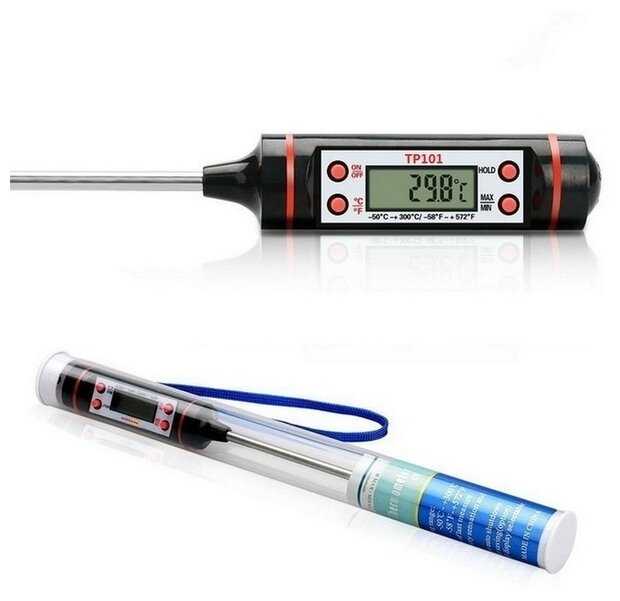 - - Замеряет температуру медленно. Термощуп пришел в тубе, но без шнурка. Не критично конечно, но все же, на фото со шнурком.