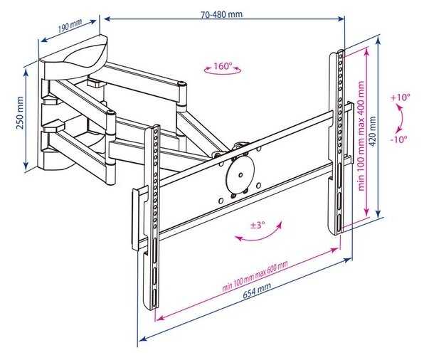 - + Обеспечивает нужный угол, в свернутом состоянии расстояние между тв и стеной небольшое, не играет, сталь не тонкая. Тв 55 норм