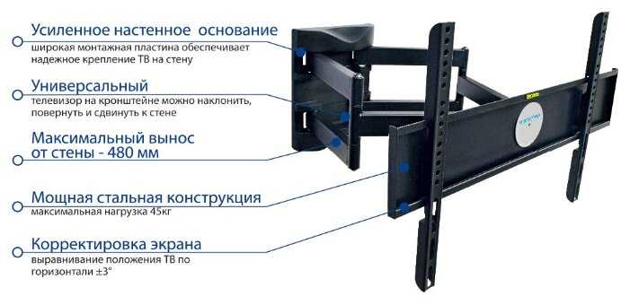 - + Брал по скидке, очень удобно регулируется. 55 диагональ встала как родная!