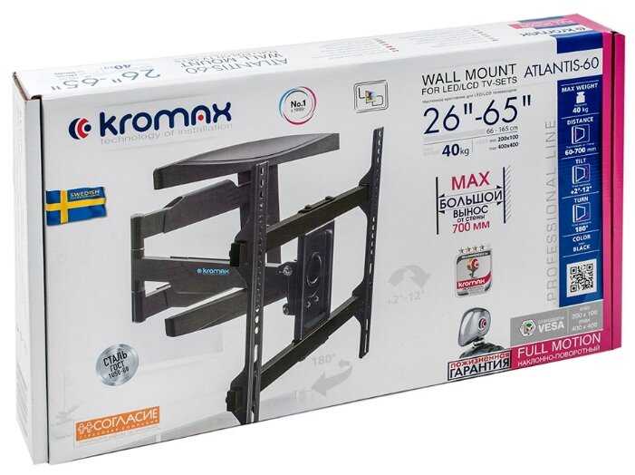 Очень долго выбирал между кронштейнами, так как диагональ телевизора 65 дюймов и нужно было чтобы он разворачивал его на очень большой угол. Спустя полтора года эксплуатации могу сказать, что кронштейном очень доволен. При всем том что его каждый день разворачивают в разные стороны, он со своей задачей справляется на ура. Ничего не скрипит, ничего не люфтит. Соотношение цены и качества идеальный вариант.