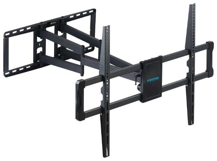 - + Отличный кронштейн. Повесит телевизор 55 дюймов. Можно вытянуть чуть ли на середину комнаты, повернуть в сторону, что очень удобно если например диван или рабочий стол расположен сбоку от телевизора. Сам сижу за столом, повернув телевизор, работаю и смотрю тв. Очень тяжелый, чтобы его повесить нужно 2 человека (1 держит по уровню, который кстати встроен в кронштейн, а второй ставит метки на стене для отверстий). Есть фиксация «рогов», таким образом исключается возможность падения телевизора при случайном его поднятии. Можно выдвигать не только вперед на 70см, но и в сторону, что очень большой плюс.