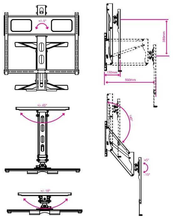 | Регулировка : | наклон, наклон и поворот, отступ от стены, поворот |