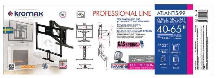 -чуть ли не единственный кронштейн с возможностью вертикального перемещения телевизора 65 дюймов за разумные деньги - - -очень большое расстояние от стены