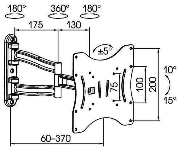 Расстояние от стены/потолка : | 60-370 мм |
